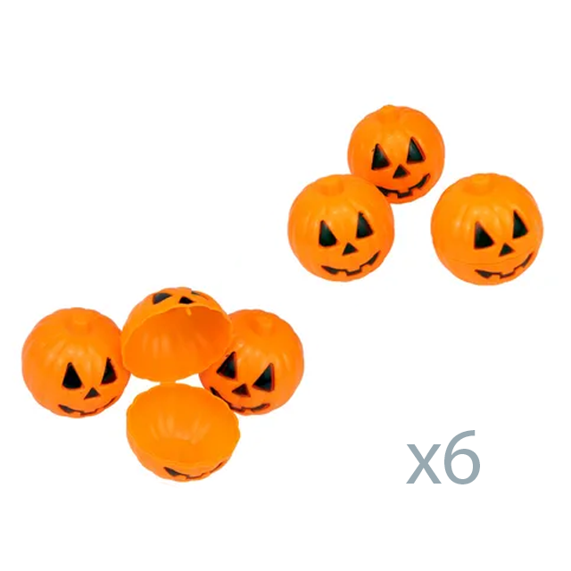 Diviértete almacenando tus dulces o pequeños tesoros de Halloween con este set de 6 calabazas con tapa. Perfectas para decorar y mantener tus sorpresas ocultas, estas calabazas añaden un toque juguetón y práctico a tus celebraciones. ¡Haz que Halloween sea más divertido y organizado con estas encantadoras calabazas!